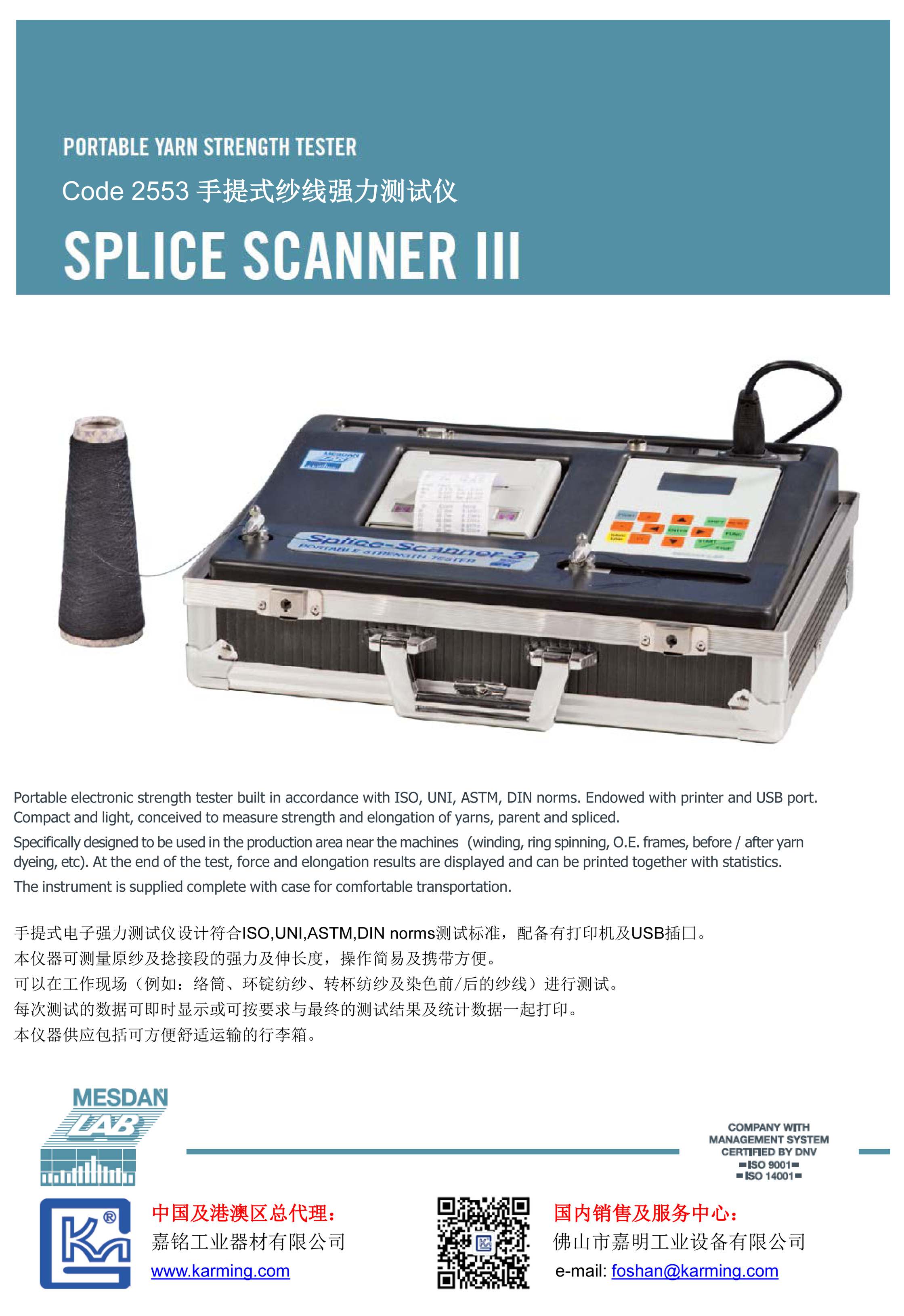 Code 2553手提式纱线强力测试仪